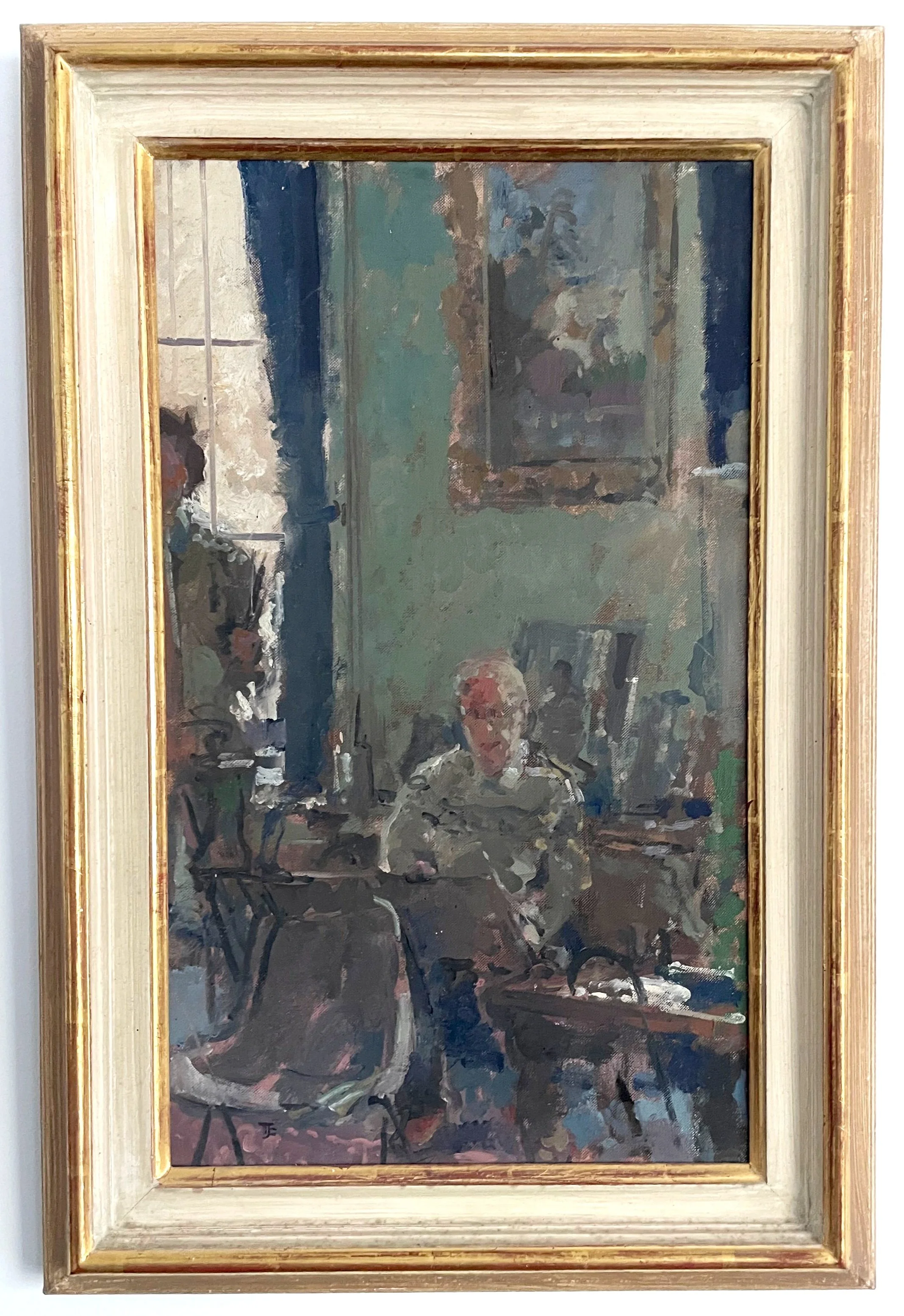 Tom Coates NEAC, Workshop at RWA Bristol, Oil on board (30 × 25cm), framed (42 x 38cm). Signed.