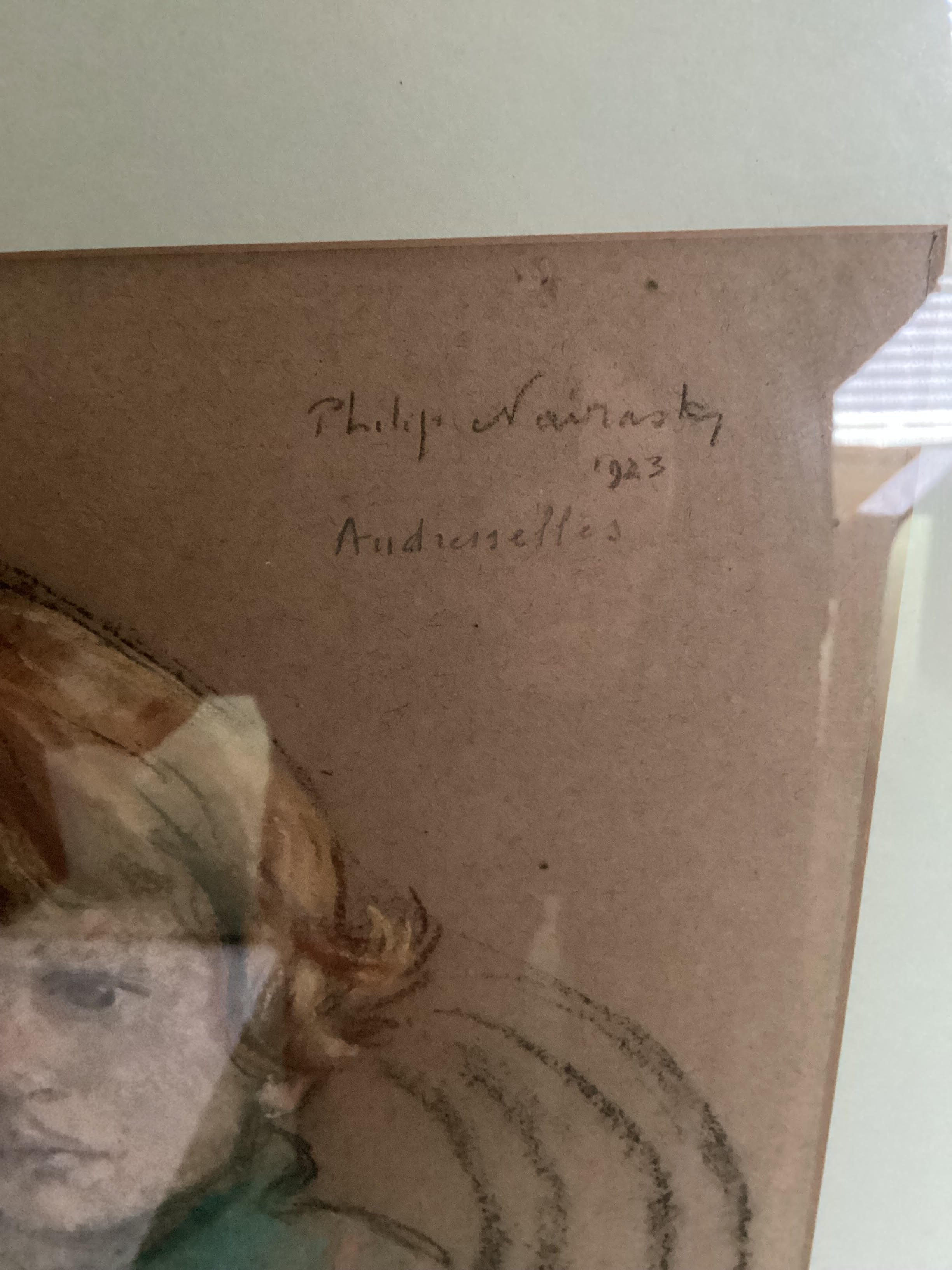 Philip Naviasky, Portrait of young child "Andresselles" (1923), Pastel (25 x 34cm), framed and glazed (41 x 51cm). Signed.